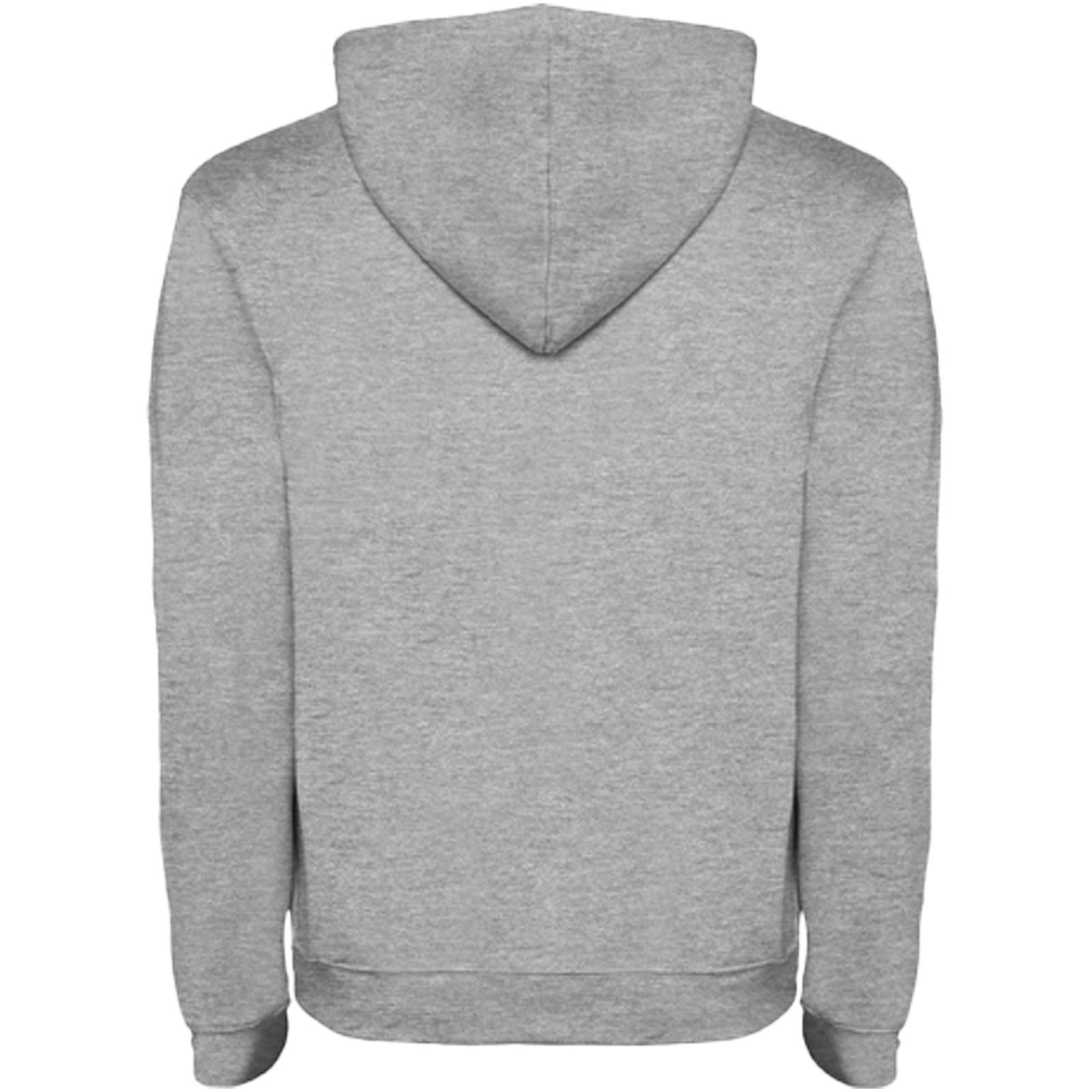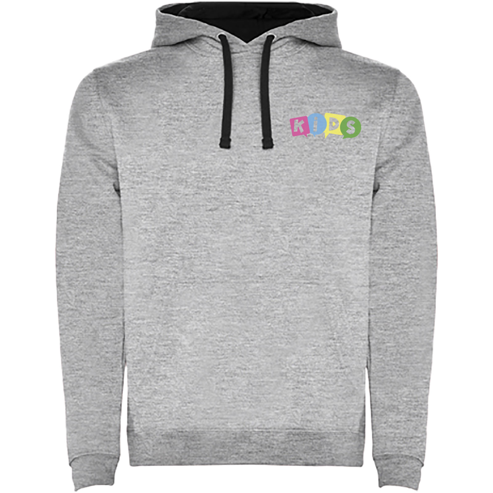 Dwukolorowa bluza z kapturem z podwójnego materiału. Wzmocnione kryte szwy w kołnierzu i kieszeń kangurka. Ściągacze 1×1 z elastanu w mankietach i pasie. Usuwalna metka.