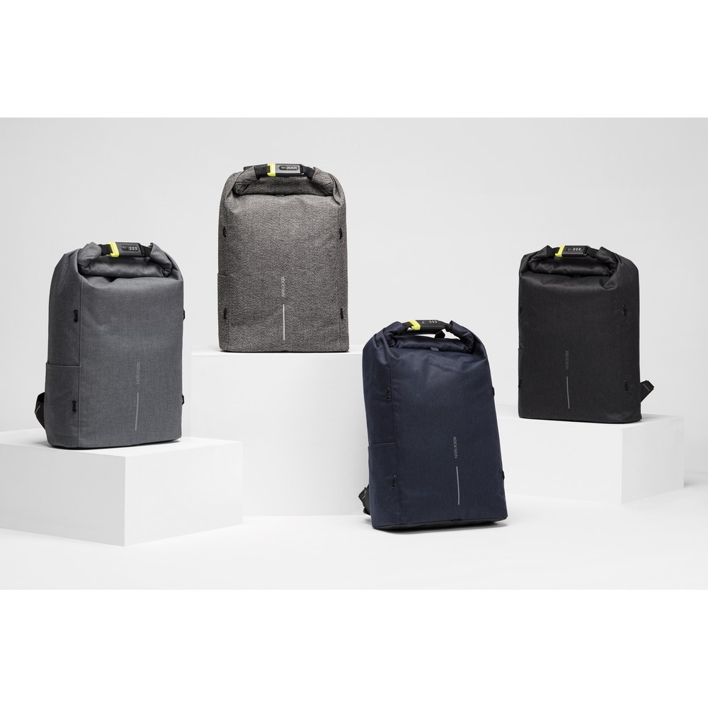 Plecak chroniący przed kieszonkowcami z ochroną RFID Urban Lite, zwijana przegroda główna i zamek szyfrowy wzmocniony stalą umożliwiający całkowite zamknięcie plecaka, zamek może posłużyć również do przypięcia plecaka do stałego obiektu, ukryte kieszenie do przechowywania dokumentów i kart kredytowych z tyłu torby oraz w pasku na ramię z ochroną RFID, kieszeń boczna, odpinana elastyczna siatka na sprzęt sportowy w komplecie, wewnątrz usztywnione przegrody na laptopa 15,6″ lub tablet do 12,9″, siateczkowe kieszenie na inne przedmioty osobiste, wzór zastrzeżony®, ślad węglowy produktu: 8,93 kg CO2