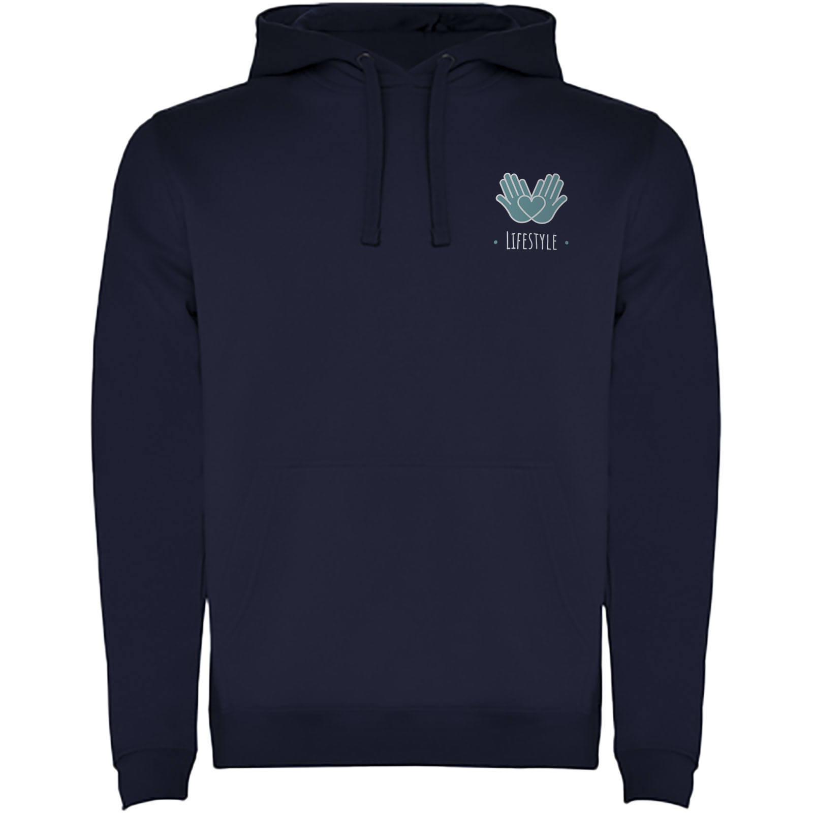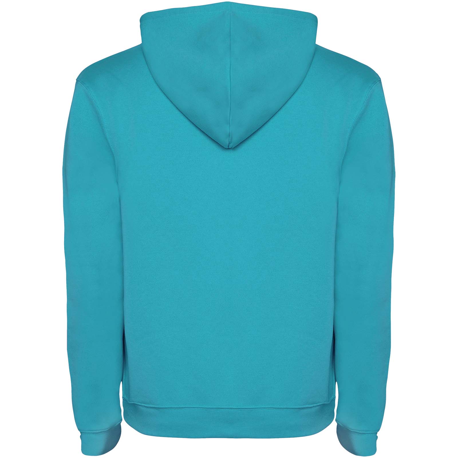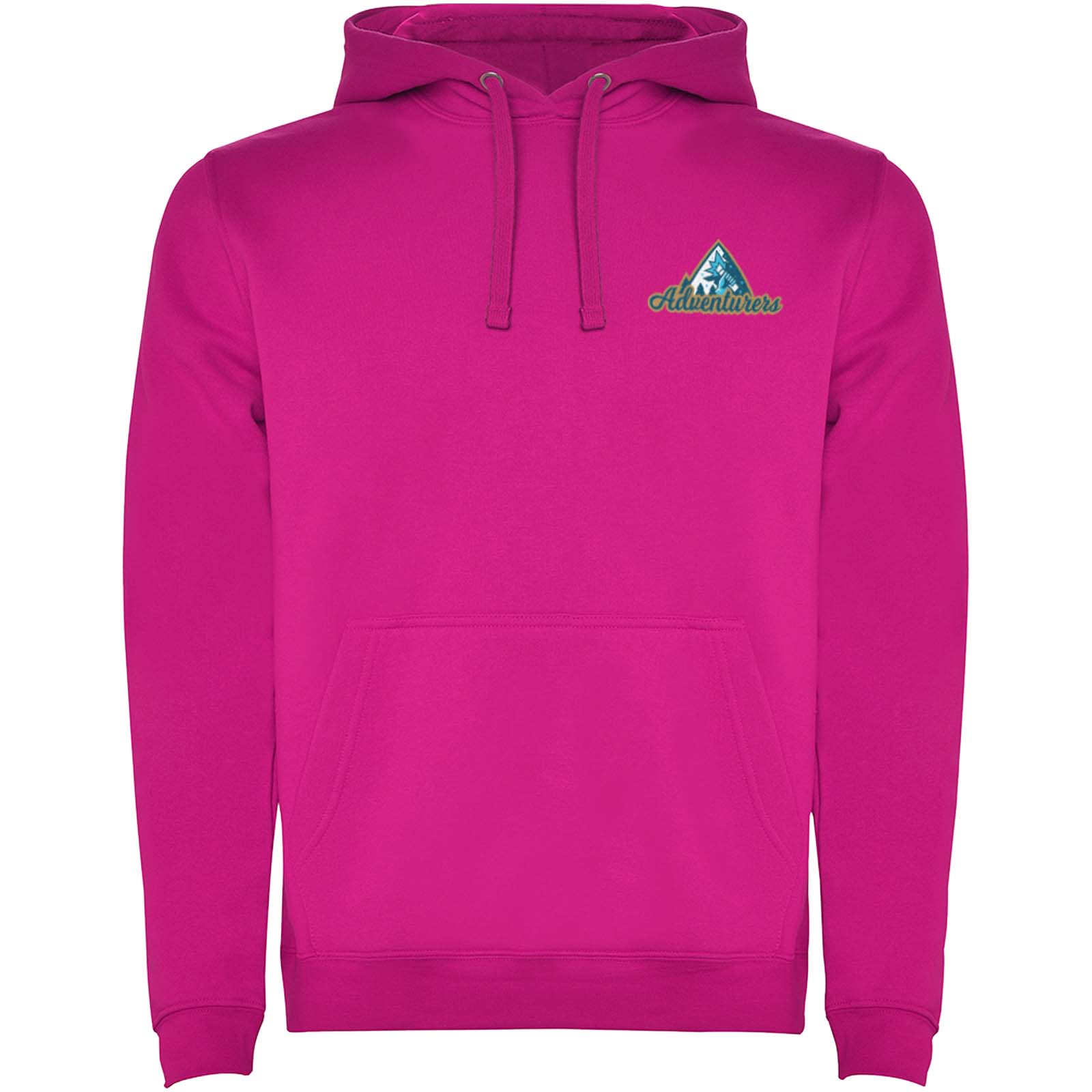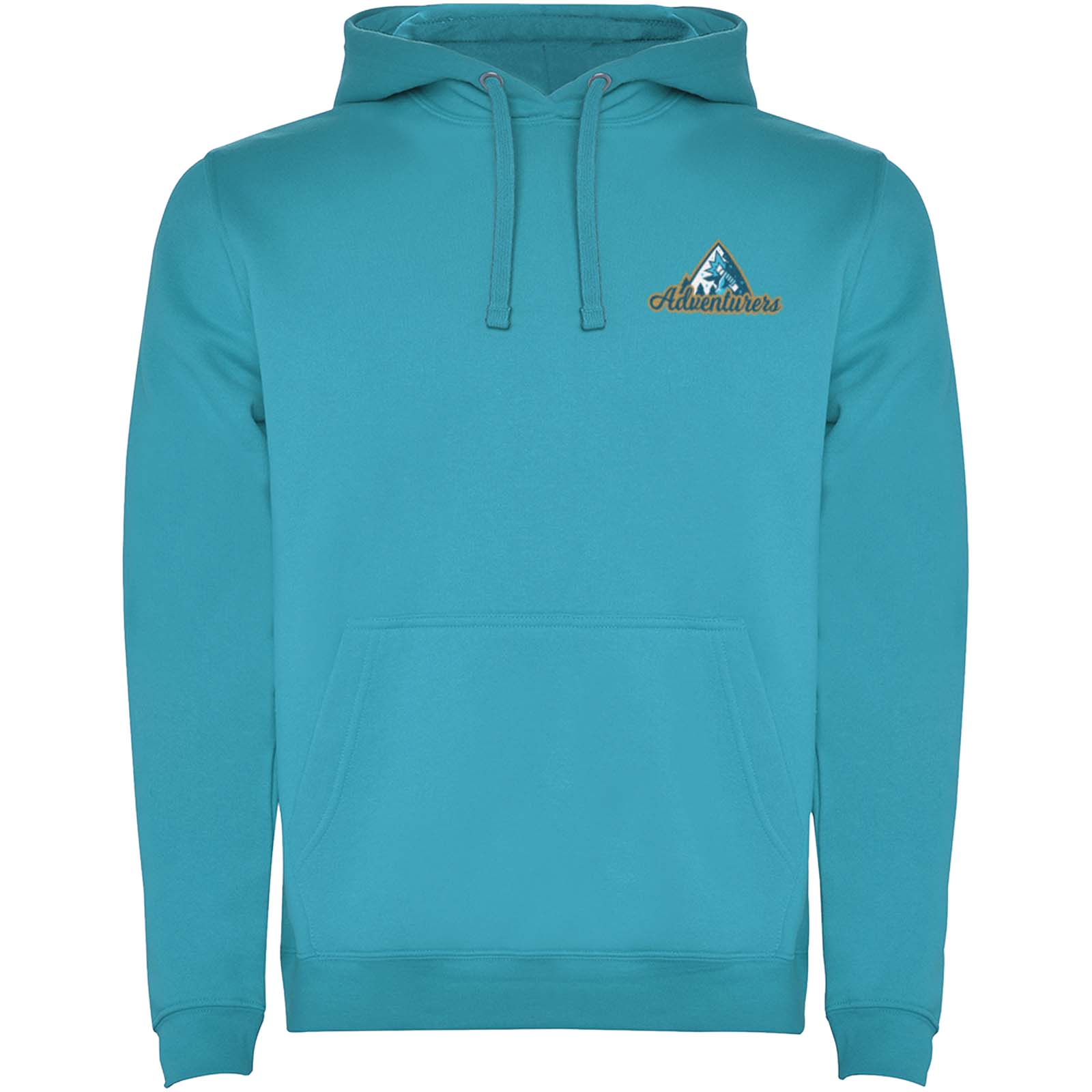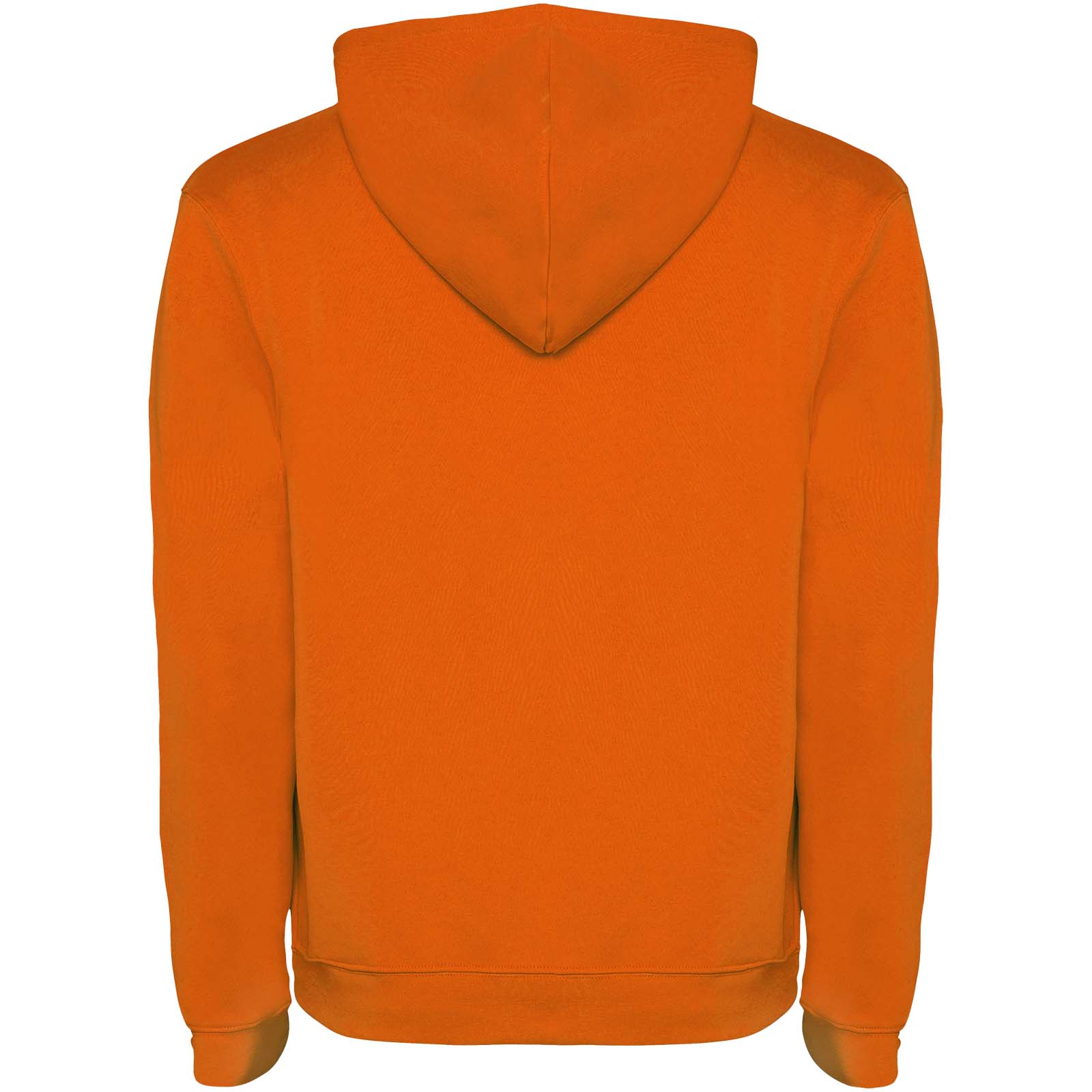 Dwukolorowa bluza z kapturem z podwójnego materiału, kontrastowym regulowanym sznurkiem, wzmocnionymi krytymi szwami w kołnierzu i kieszenią typu kangurka. Ściągacze 1×1 z elastanu w mankietach i pasie. Usuwalna metka.