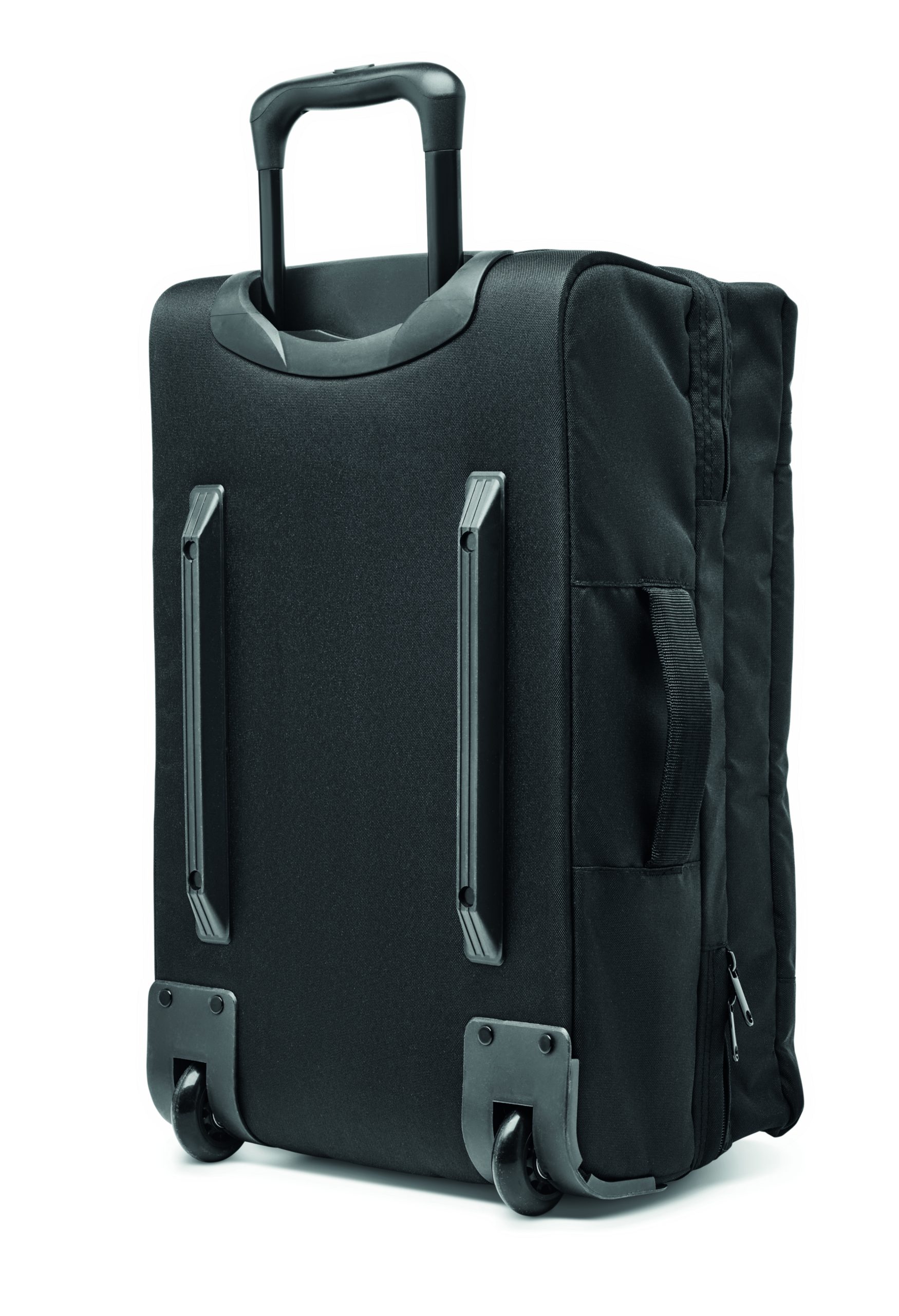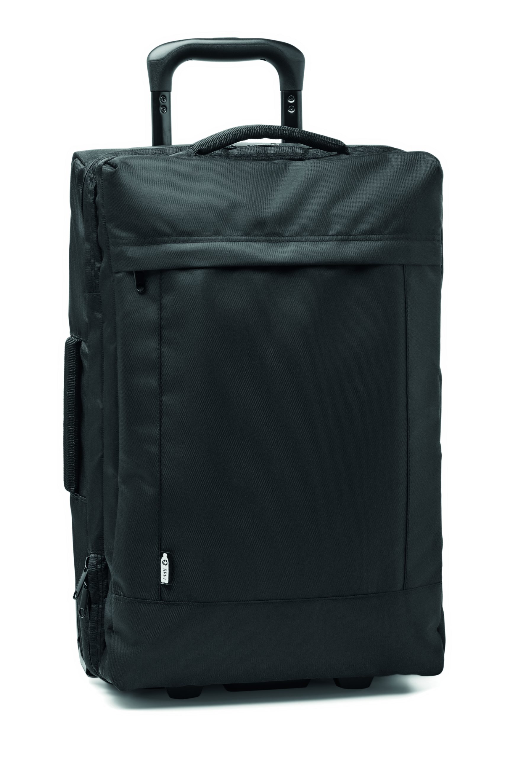 Walizka z poliestru 600D RPET. Dwie duże kieszenie wewnętrzne zapinane na zamek błyskawiczny. Jedna przednia kieszeń zapinana na zamek błyskawiczny oraz górne, boczne i dolne uchwyty. W zestawie zamek szyfrowy i podwójna rama rurowa. 2 kółka.