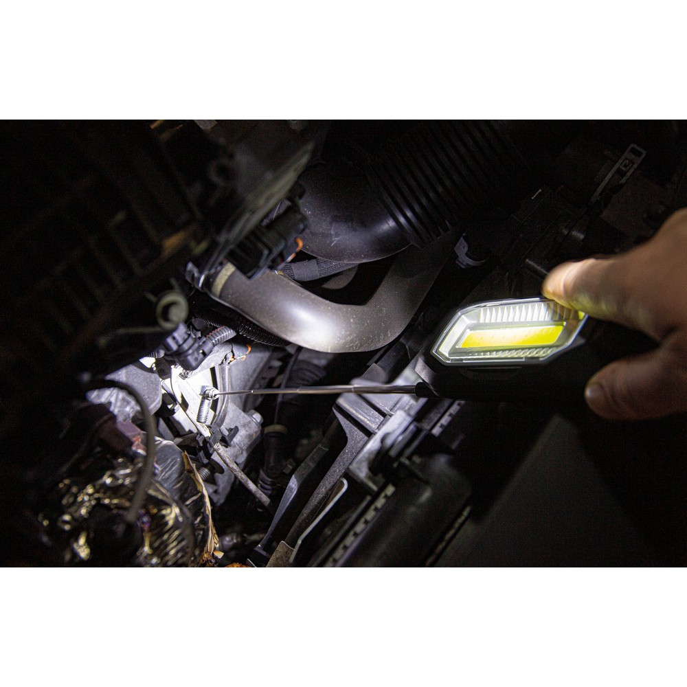 Wielofunkcyjna latarka warsztatowa LED 1W ze światłem COB, regulowany kąt świecenia światła COB, magnes z tyłu do przyczepienia do płaskich powierzchni oraz teleskopowa rączka 20 cm z magnesem do zbierania małych części, śrubek itp., światło LED 80 lumenów, zasięg do 50 m, światło COB 230 lumenów, baterie w komplecie, ślad węglowy produktu: 1,32 kg CO2