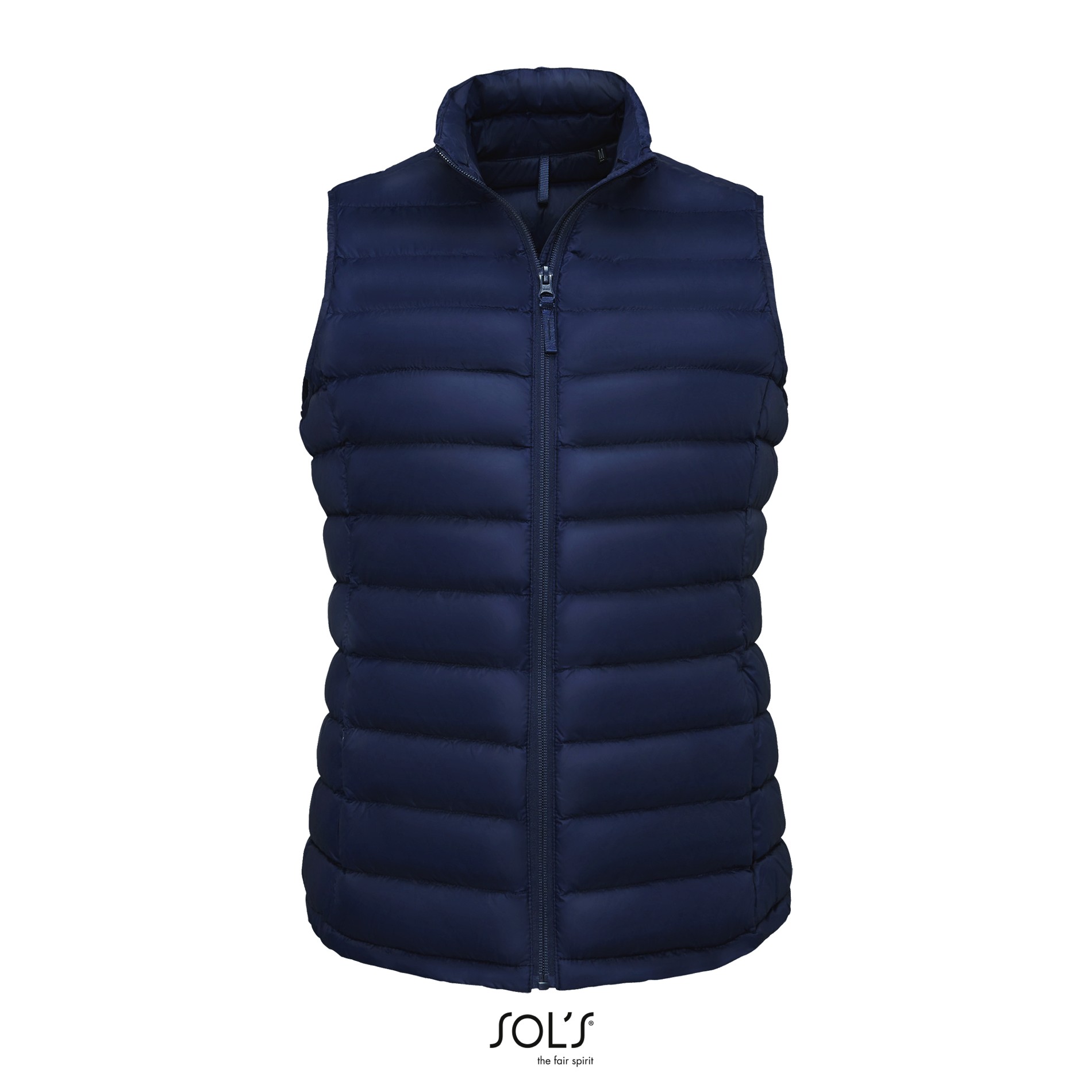 SOL’S WILSON BW WOMEN. Damska lekka puchowa kamizelka. Materiał zewnętrzny i podszewka: 100% poliamid. Wyściełanie: 60% Sorona, 40% poliester z recyklingu. POLIAMID 380T, zapinana zamkiem błyskawicznym, 2 przednie kieszenie na zamek błyskawiczny, 2 kieszenie wewnętrzne. Mały wysoki, kołnierz, dopasowany krój, system składania ”In bag” ze stoperami. OEKO-TEX®. Sprzedawana tylko z nadrukiem.