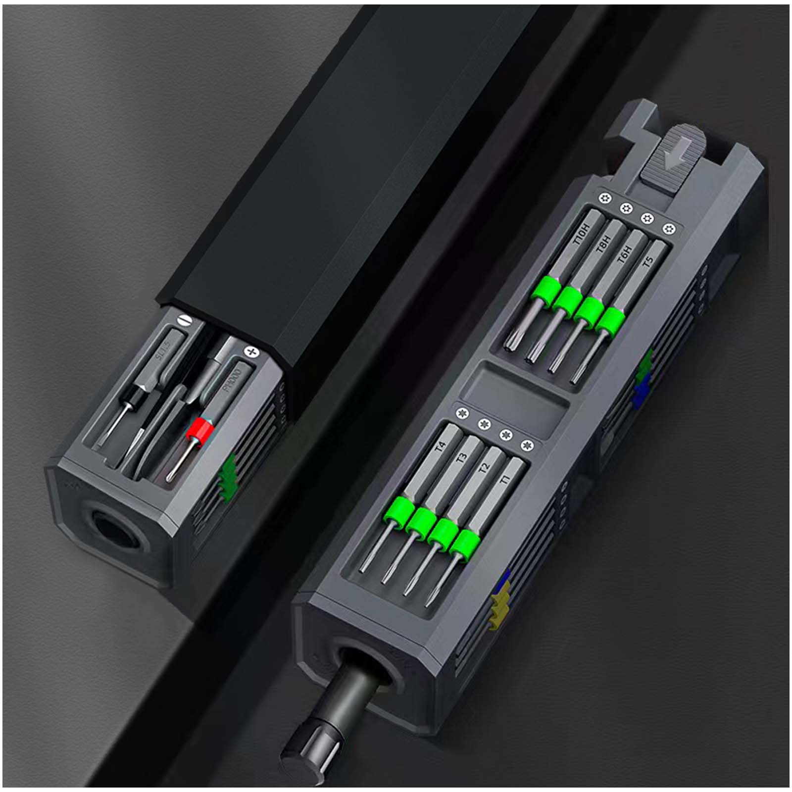 30-częściowy zestaw z precyzyjnym wkrętakim, 28 bitami i dwoma akcesoriami. Obudowę z oksydowanego aluminium (15 x 3,6 x 3,6 cm) można spersonalizować za pomocą grawerowanego logo. Kompaktowa obudowa ułatwia przechowywanie wszystkiego w jednym miejscu. Wkrętak ręczny doskonale nadaje się do naprawy każdego małego urządzenia, a dzięki swojemu kształtowi jest łatwy w zastosowaniu i obsłudze. Posiada szeroką gamę bitów, dzięki czemu jest uniwersalny dla wielu rodzajów zadań w zakresie majsterkowania. Każdy typ bitu jest oznaczony innym kolorem, aby można go było łatwo zidentyfikować. Bity są przyciągane magnetycznie do śrubokręta. W zestawie z pęsetą do zbierania małych przedmiotów i łomem do podnoszenia i otwierania obudów. Zapakowany w pudełko upominkowe (17 x 55 x 43,5 cm) z magnetycznym zamknięciem. 3-letnia gwarancja.