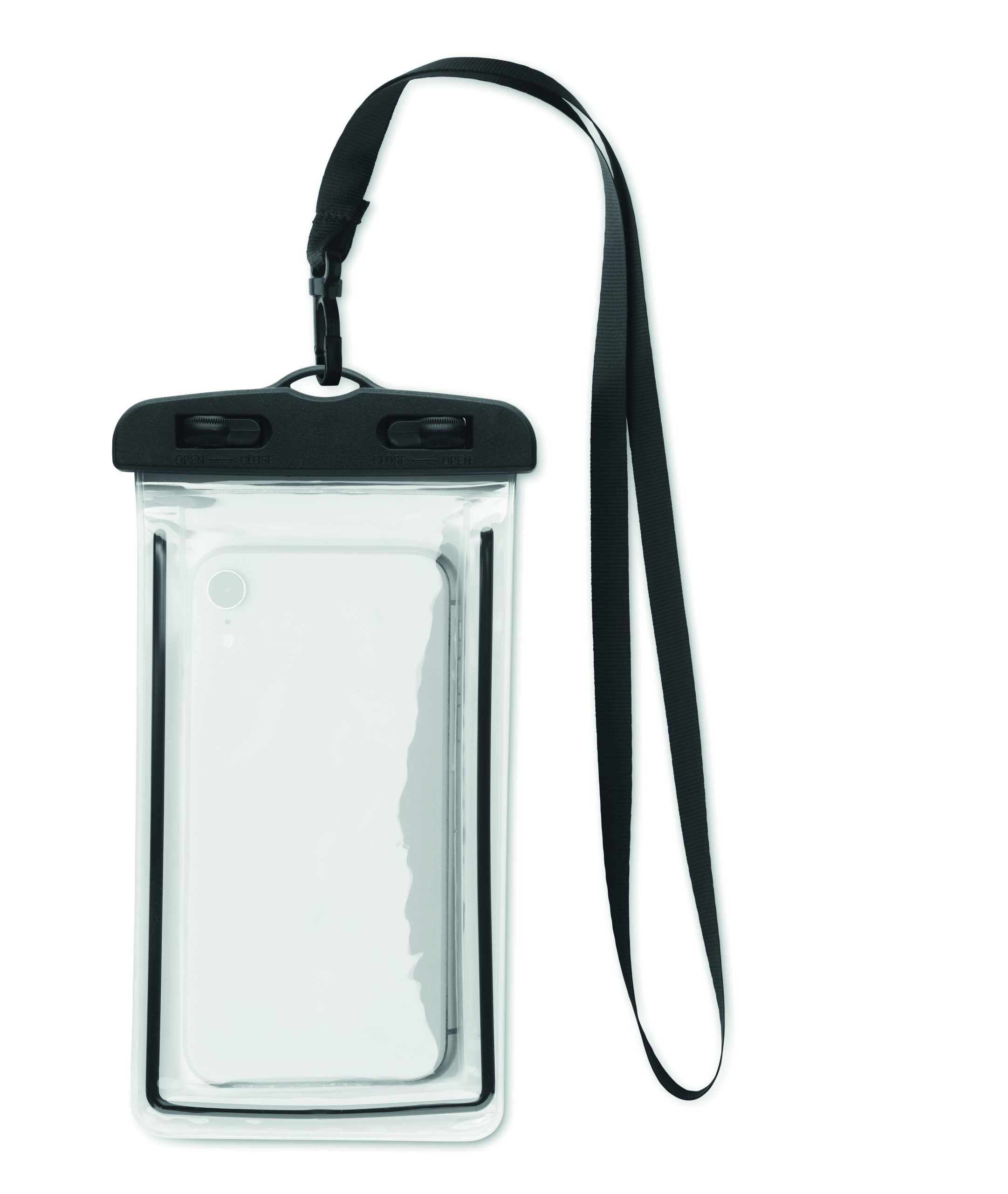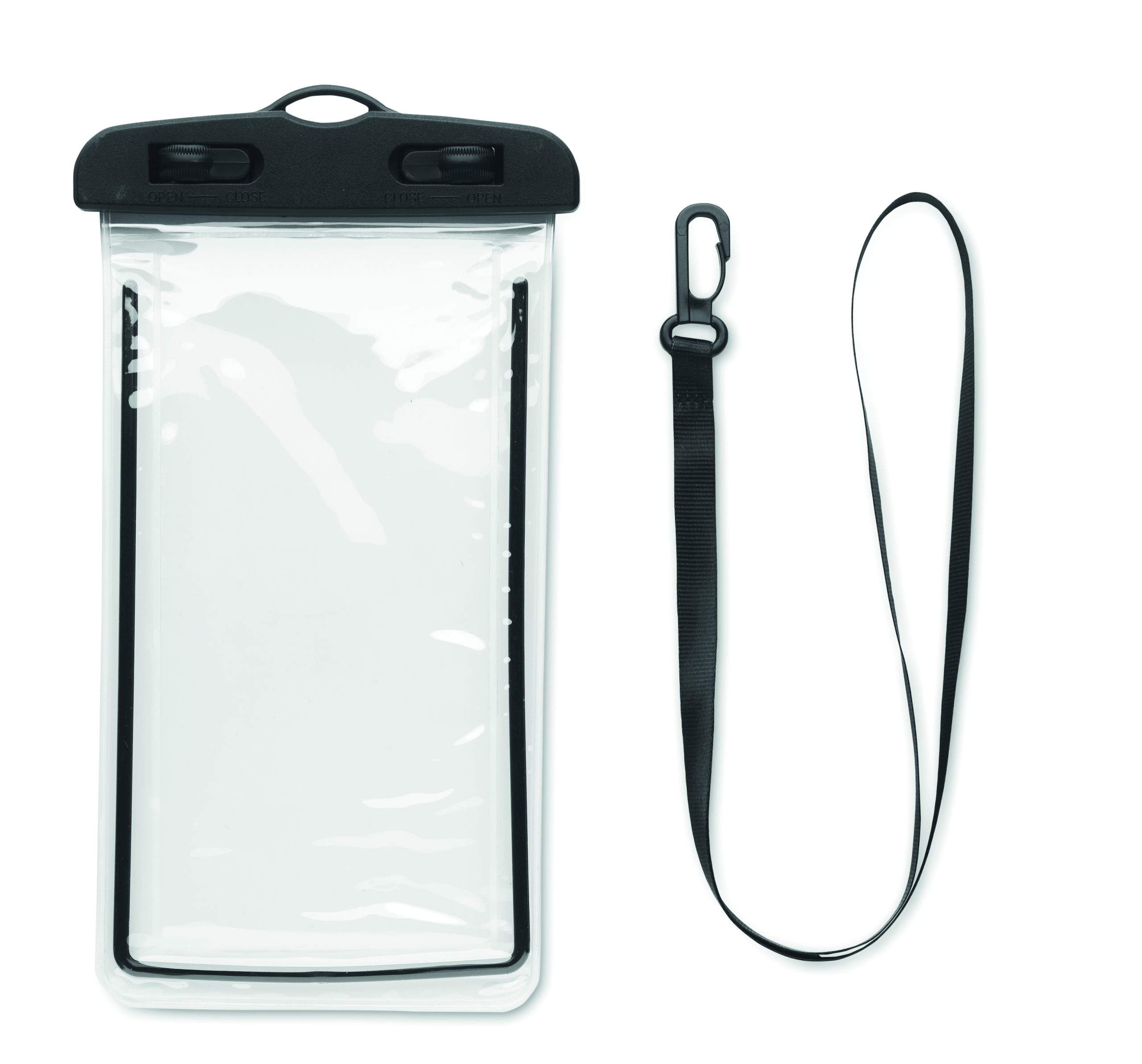 Wodoodporne etui na telefon z regulowaną i odpinaną smyczą. Wodoodporność: IPX 6. Pasuje do telefonów z ekranem do 6,7 cala.