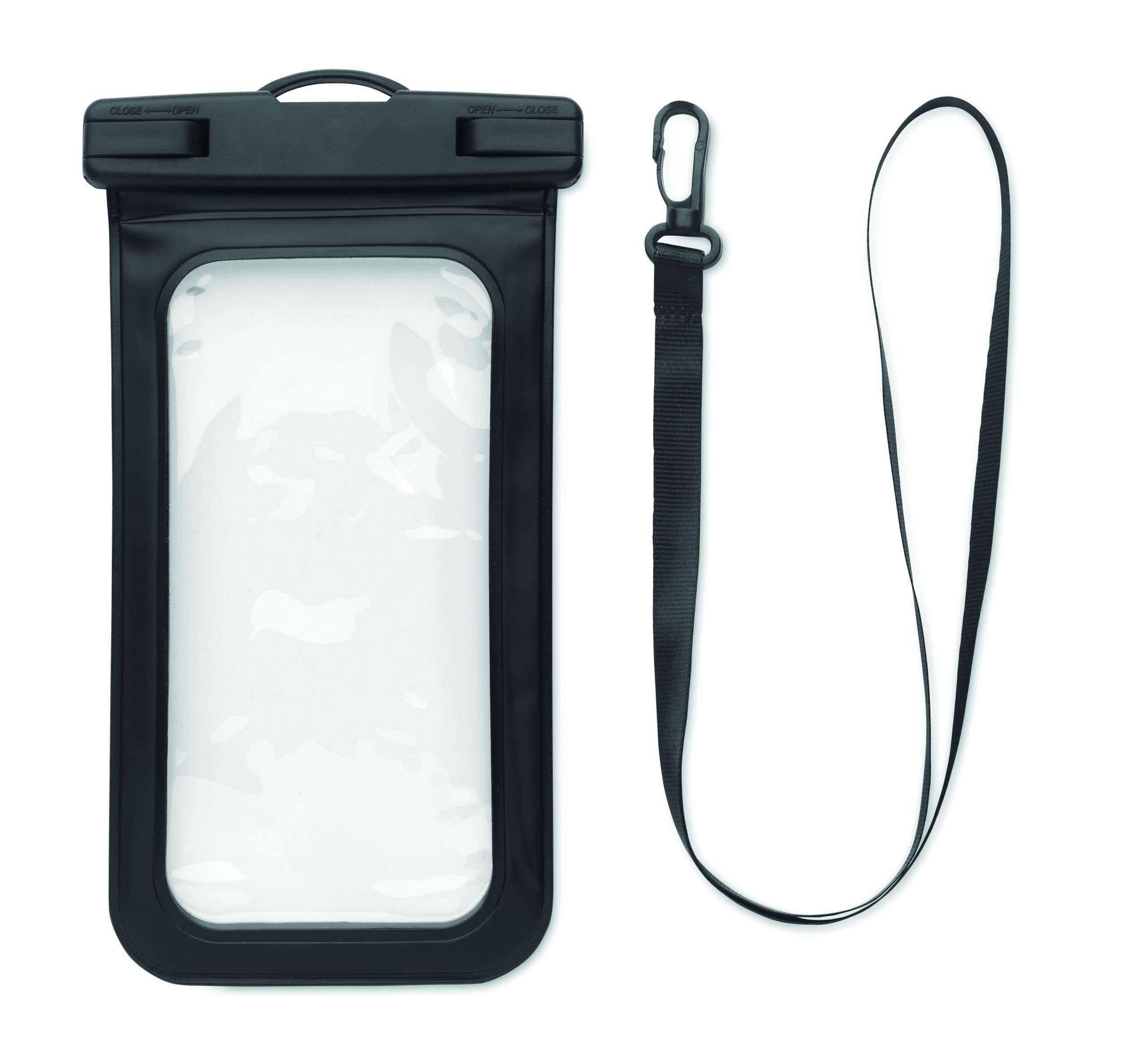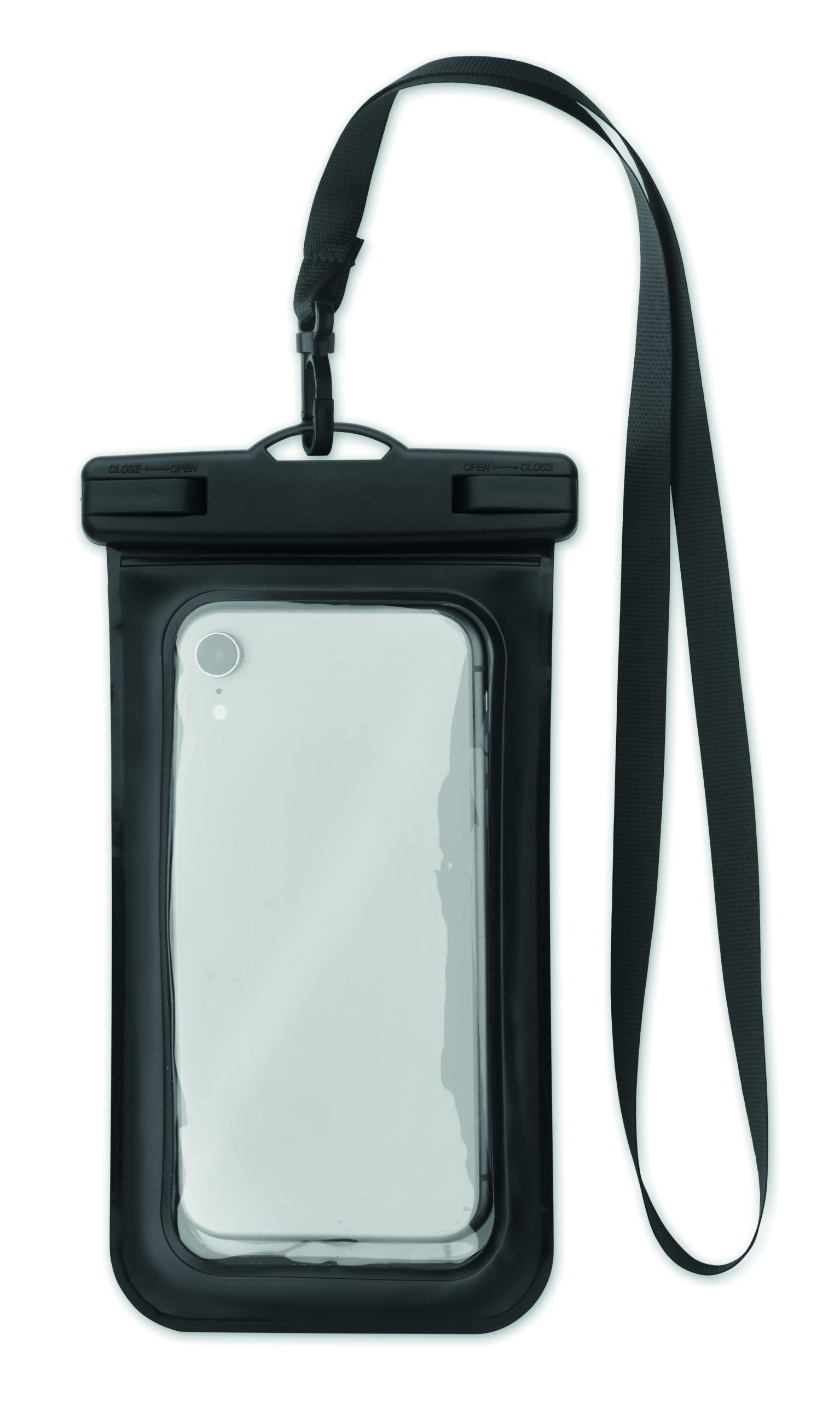 Wodoodporny pokrowiec na telefon z regulowaną i odpinaną smyczą. Wodoodporność: IPX 8. Pasuje do urządzeń o przekątnej 6,7 cala.