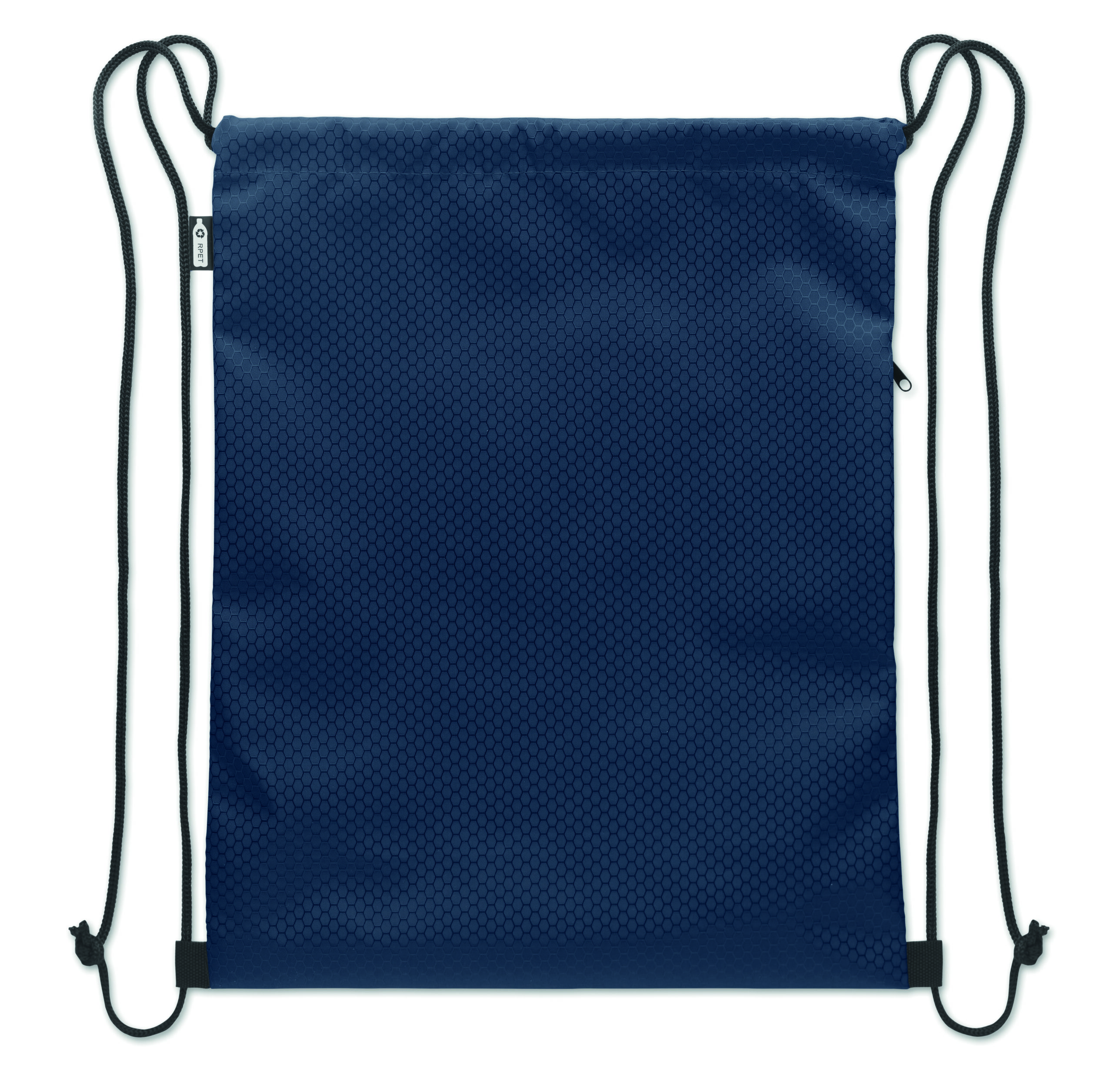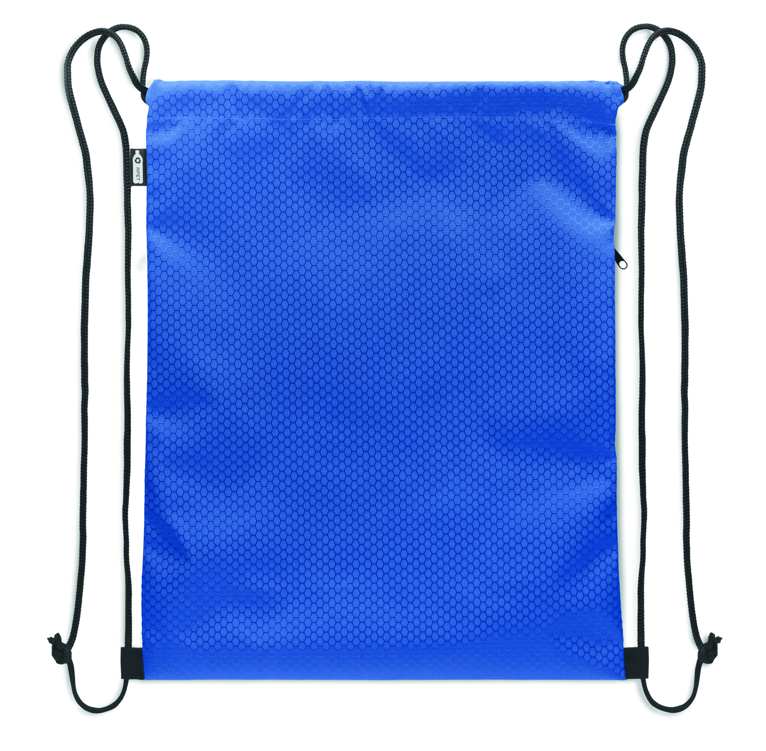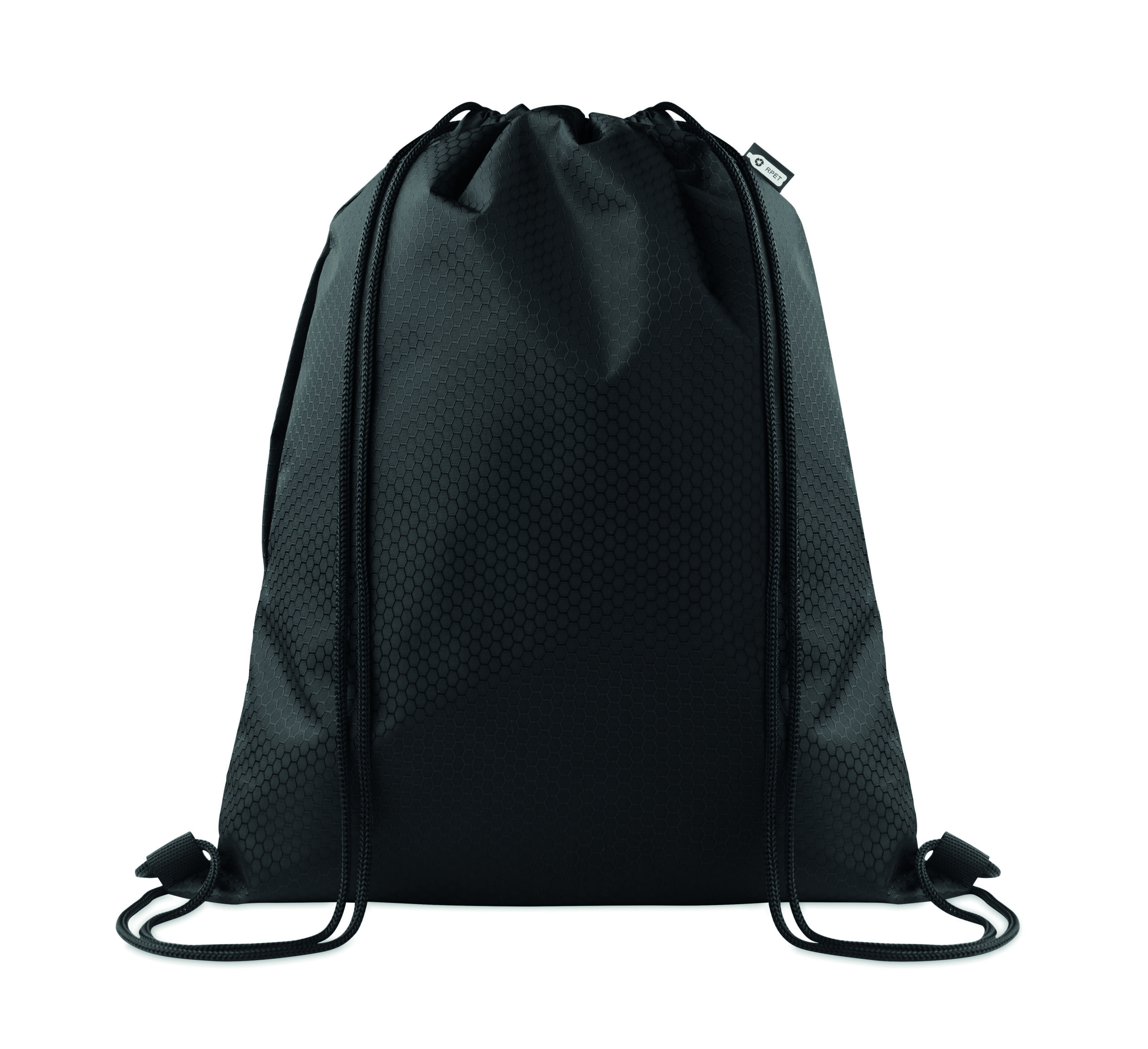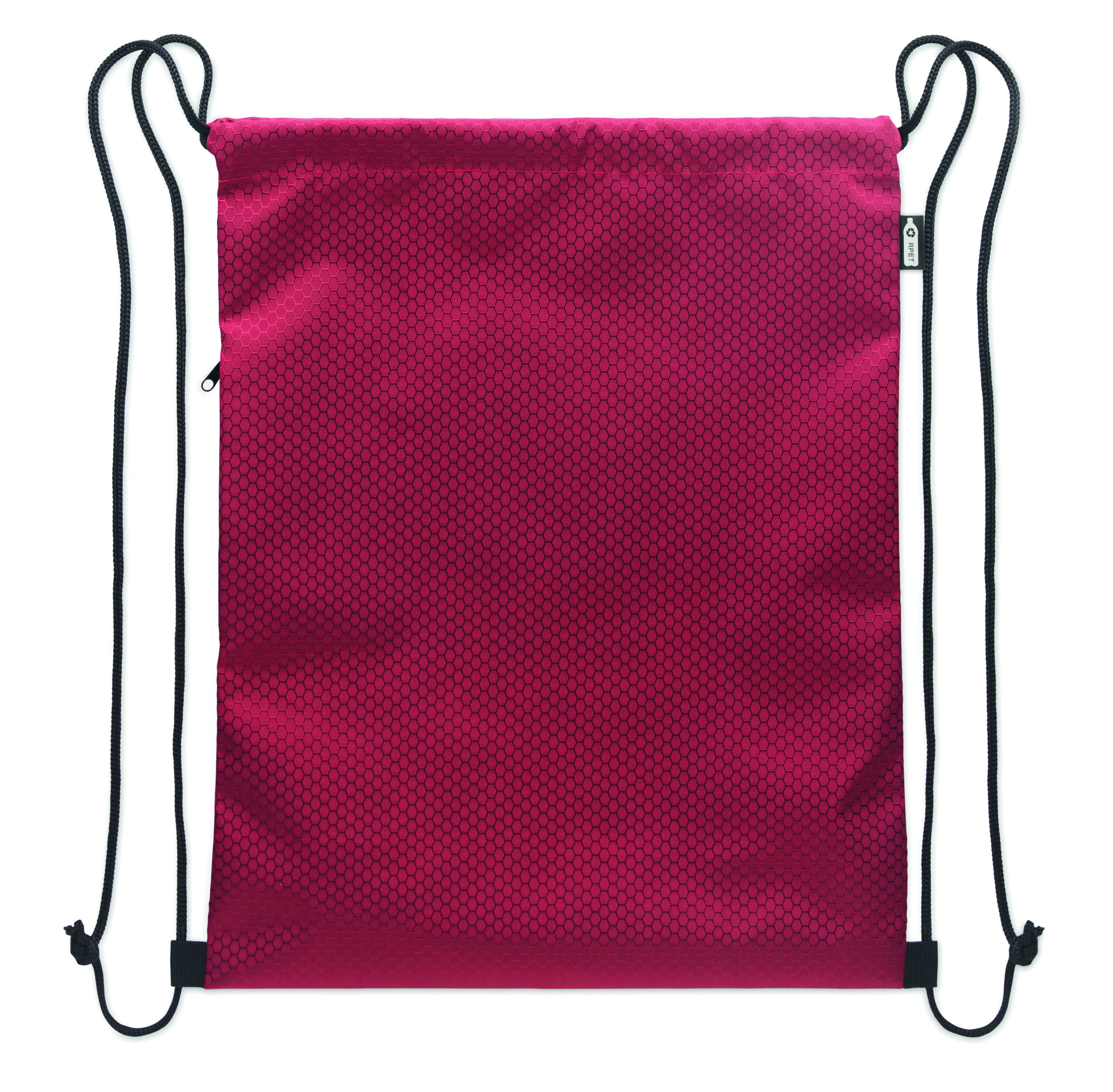 Worek ze sznurkiem wykonany z poliestru RPET 420D z pionową boczną kieszenią na zamek błyskawiczny i podszewką RPET 210D. Ma wytrzymałe sznurki. Pojemność 4,5 l, maksymalne obciążenie 5 kg.