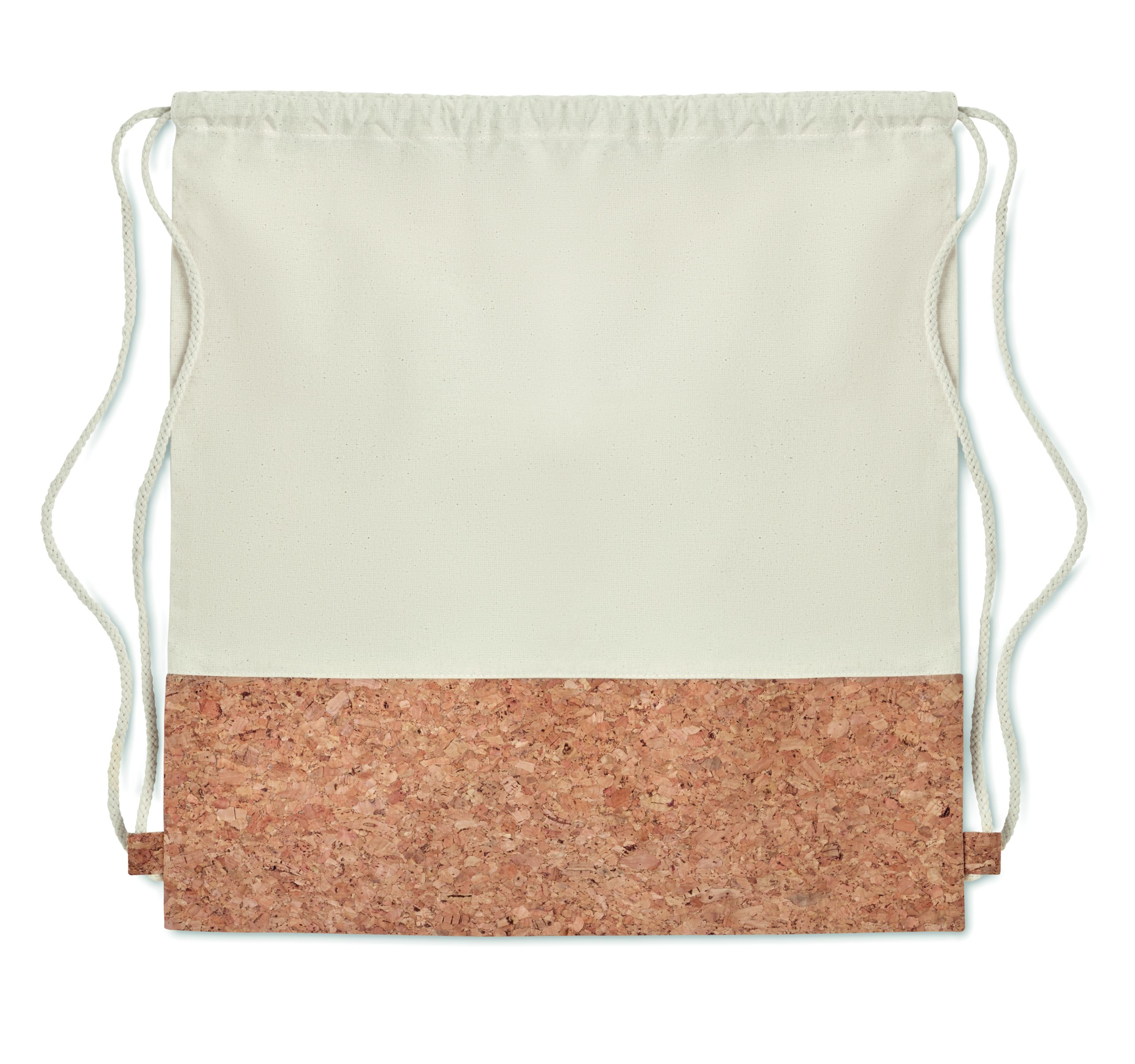 Bawełniany worek ze sznurkiem z korkowym wykończeniem. 160 g/m². Korek jest materiałem naturalnym, ze względu na jego strukturalną naturę i porowatość powierzchni ostateczny wygląd nadruku na każdym artykule może się różnić.