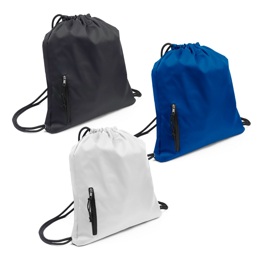 Obszerny worek z grubym sznurkiem umożliwiającym noszenie na plecach, wzmocniony wodoszczelny materiał lepiej chroni przed czynnikami atmosferycznymi, pomieści zakupy lub strój sportowy na siłownię, nowoczesny design, posiada funkcjonalną przednią kieszeń na drobiazgi zamykaną na zamek błyskawiczny, produkt wykonany z poliestru 230 g/m2