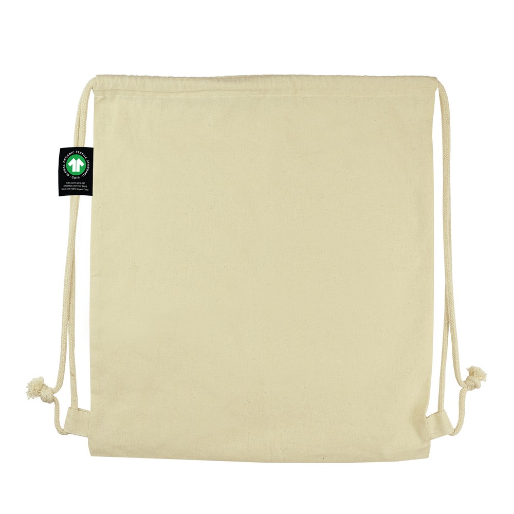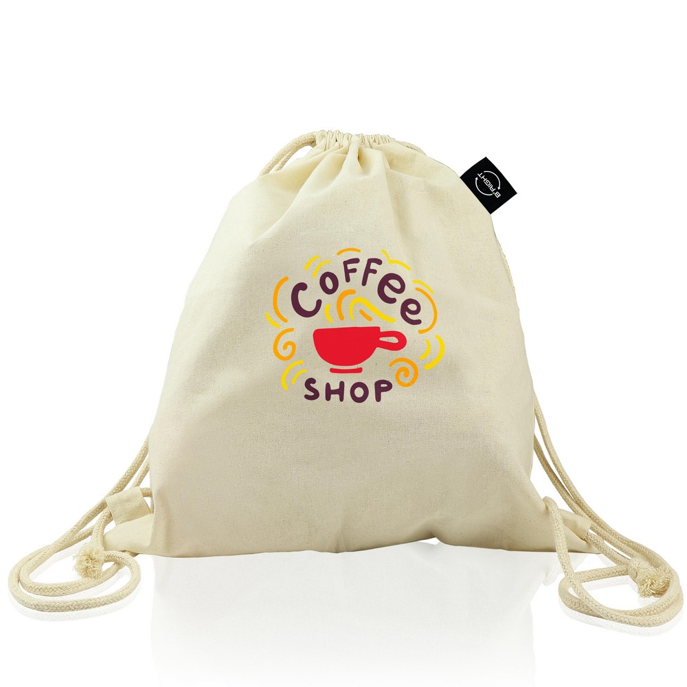 Worek ze sznurkiem B’RIGHT, sznurek umożliwia noszenie na plecach, pomieści drobne zakupy lub strój sportowy na siłownię, produkt wykonany z bawełny organicznej o gramaturze 150 g/m2, zgodny z certyfikatem GOTS (Global Organic Textile Standard)