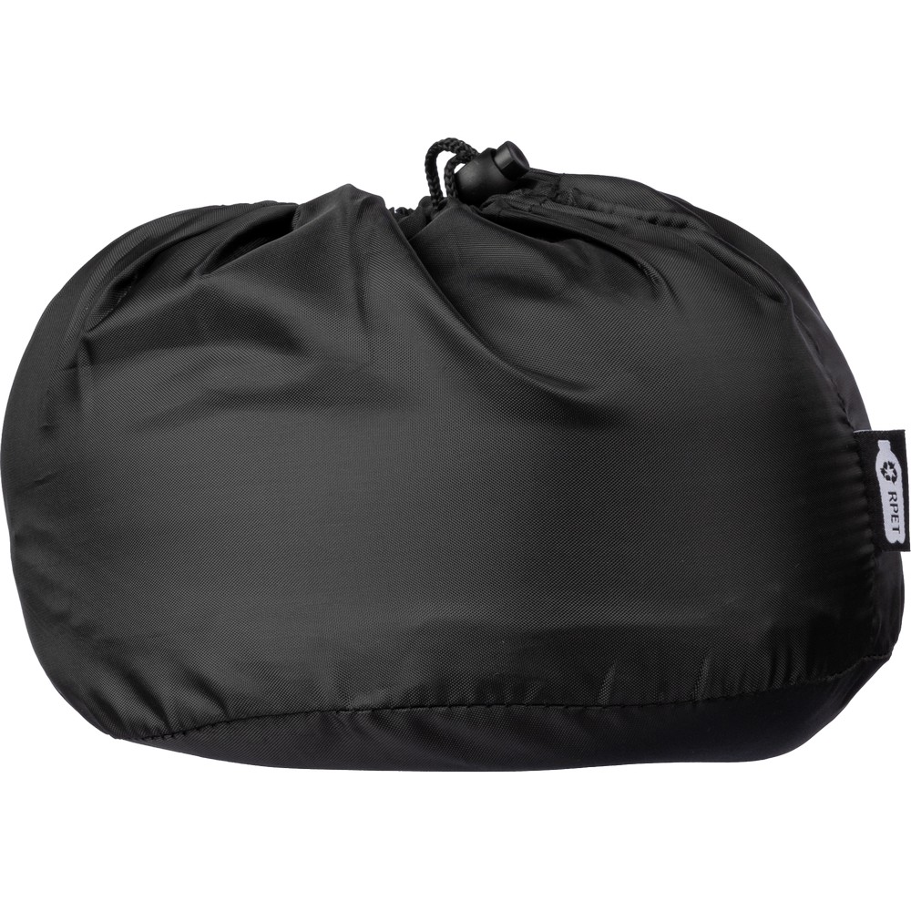Zagłówek podróżny, poduszka, regulowany sznurek ułatwia dopasowanie zagłówka do pozycji, sprawdzi się podczas podróży autokarem, pociągiem, samochodem lub samolotem, zapakowany w woreczek wykonany z RPET, produkt wykonany między innymi z poliestru
