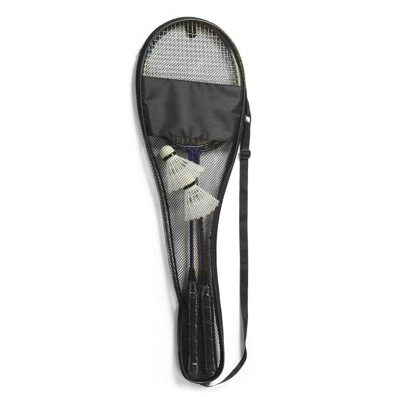 Zestaw do badmintona, 2 rakiety ze stalowymi ramami i plastikowymi rączkami, 2 lotki, czarny pokrowiec z paskiem na ramię