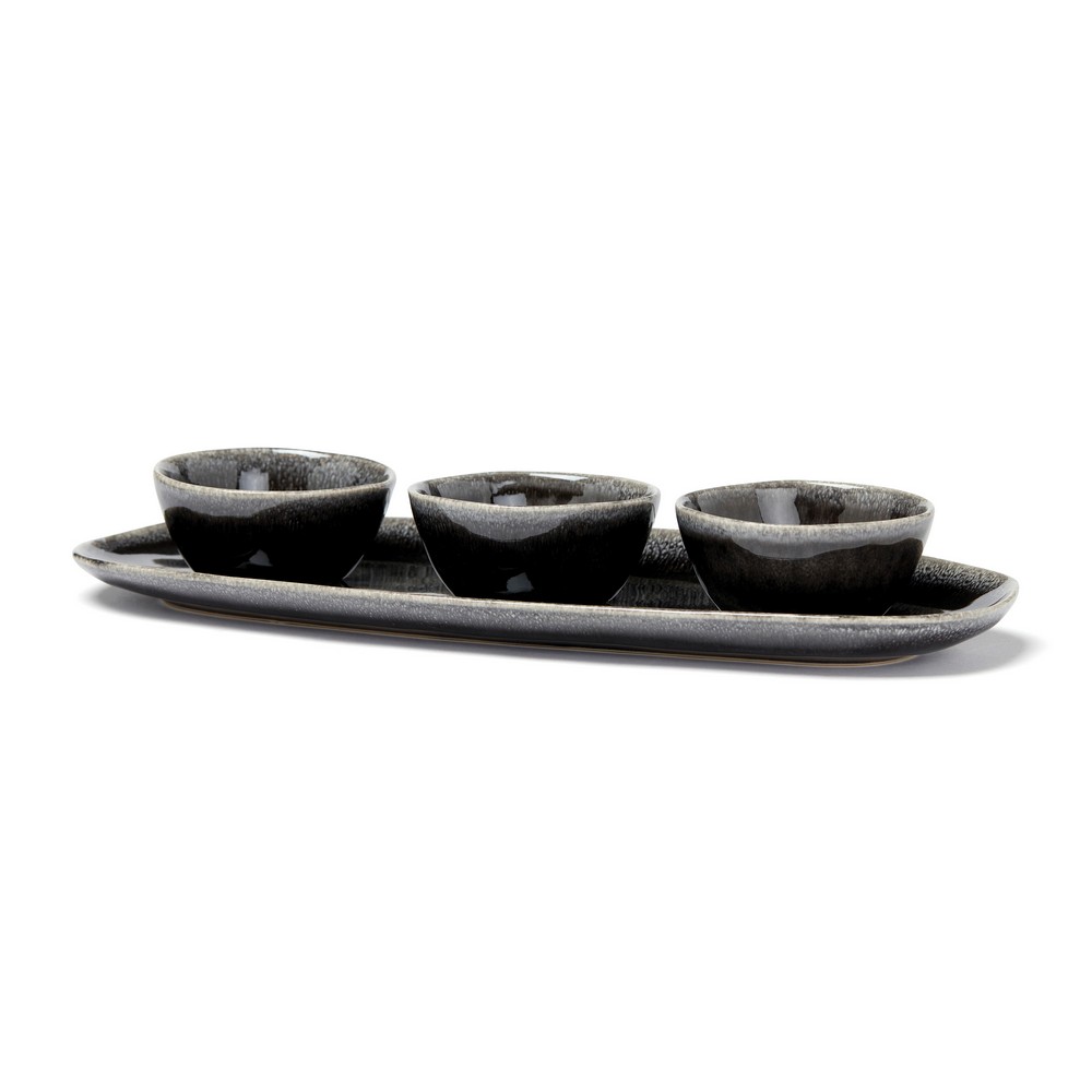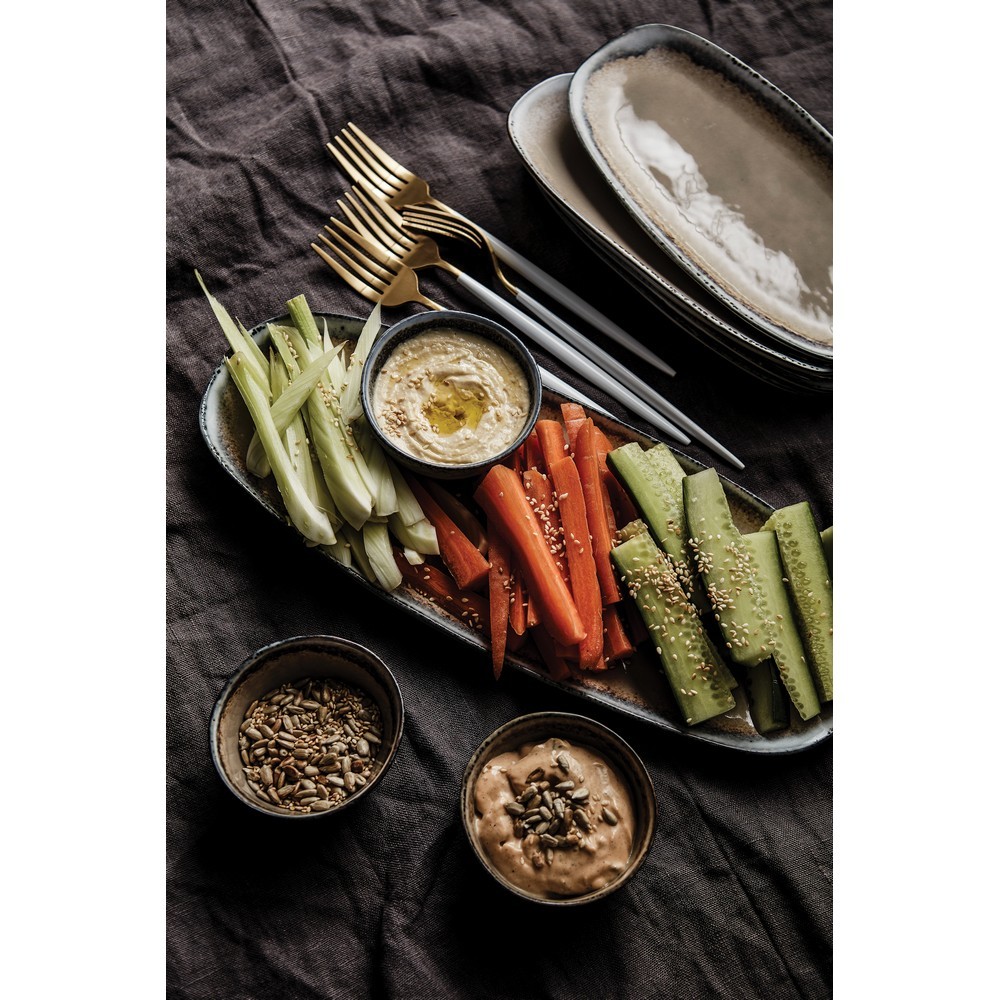 Zestaw do serwowania 4 el., wykonane z naturalnej kamionki, każdy talerz jest robiony ręcznie dzięki czemu jest niepowtarzalny, można myć w zmywarce i używać w kuchence mikrofalowej