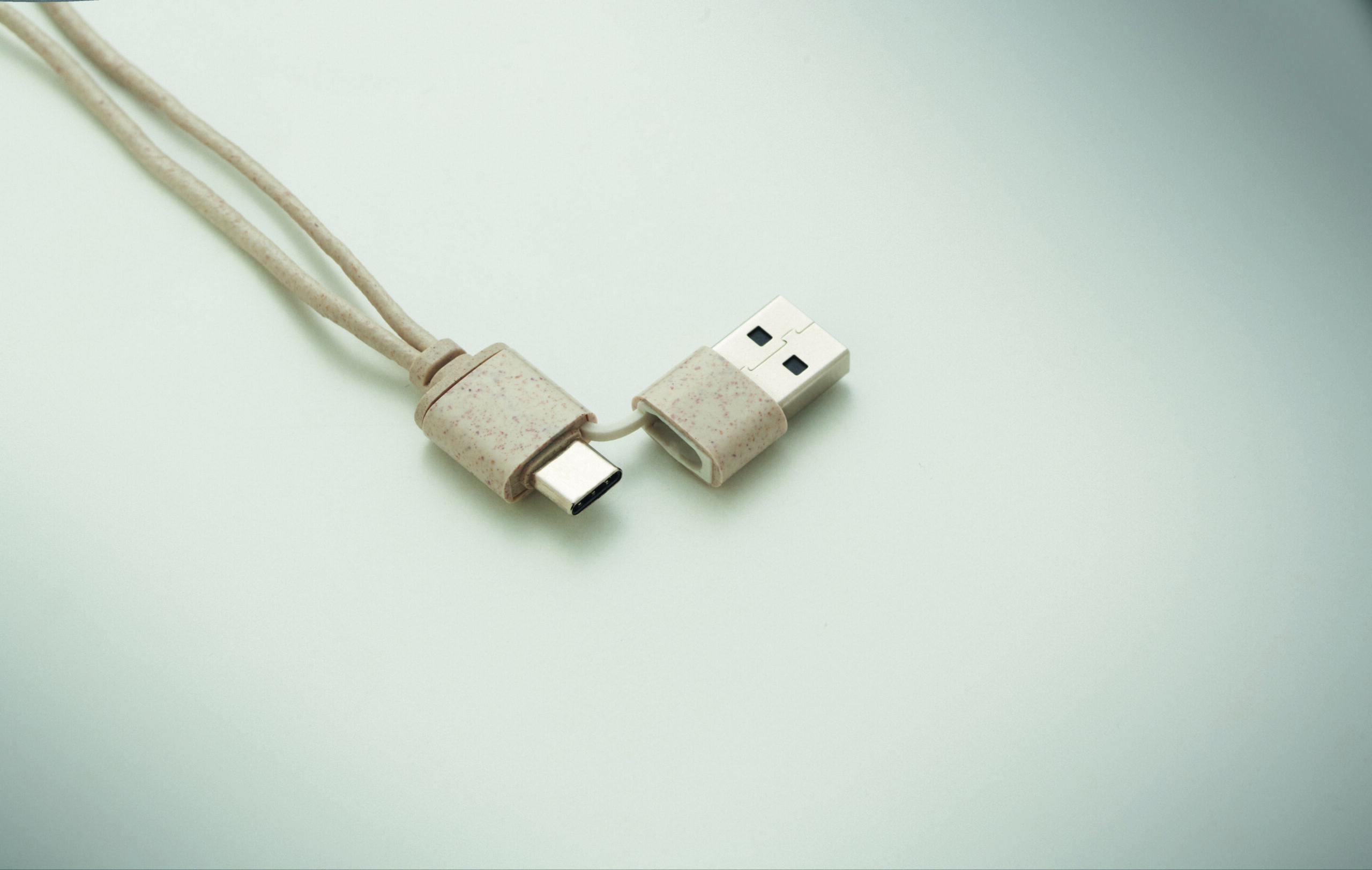 Zestaw kabli w etui ze słomy pszennej/ABS z bambusową pokrywą i karabińczykiem. Pokrywa służy jako podstawka pod telefon (w pozycji poziomej). Wejście kabla 2 w 1 USB-C/A, wyjście Type-C i 2 w 1 pin.