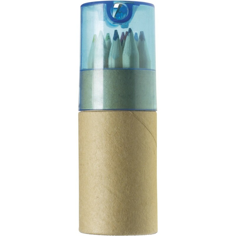 Zestaw 12 kredek w okrągłym pudełku zamykanym kolorową zatyczką z wbudowaną temperówką, produkt wykonany między innymi z kartonu i ABS