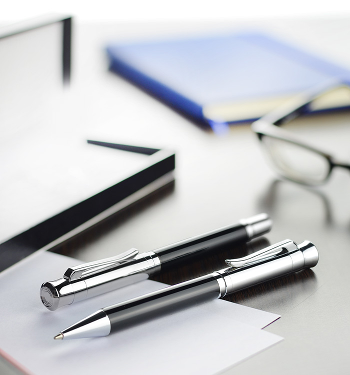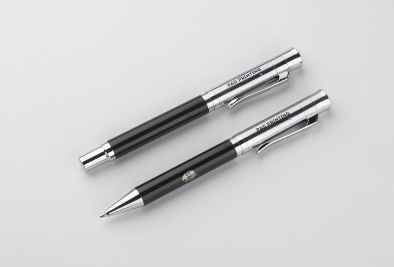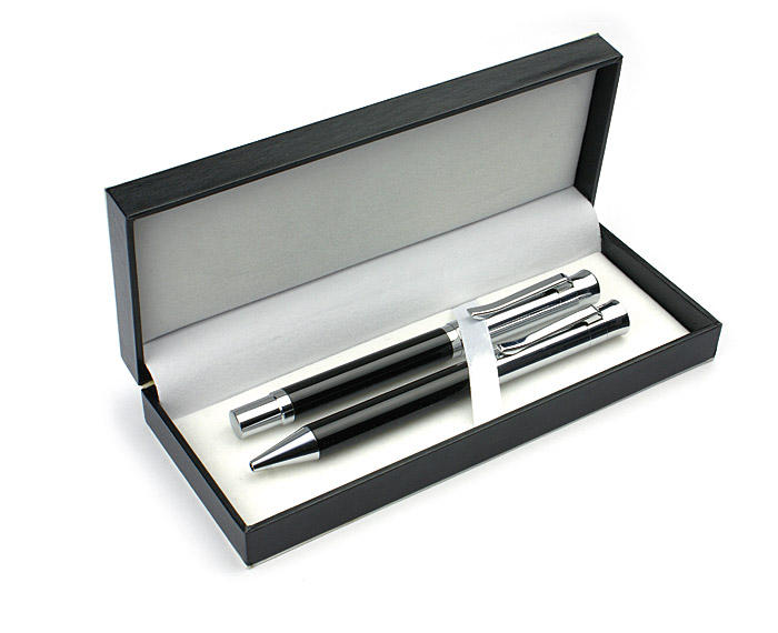 Wymiary: 185 x 75 x 35 mm (etui), 139 x ⌀ 12 mm (długopis), 137 x ⌀ 12 mm (pióro kulkowe)