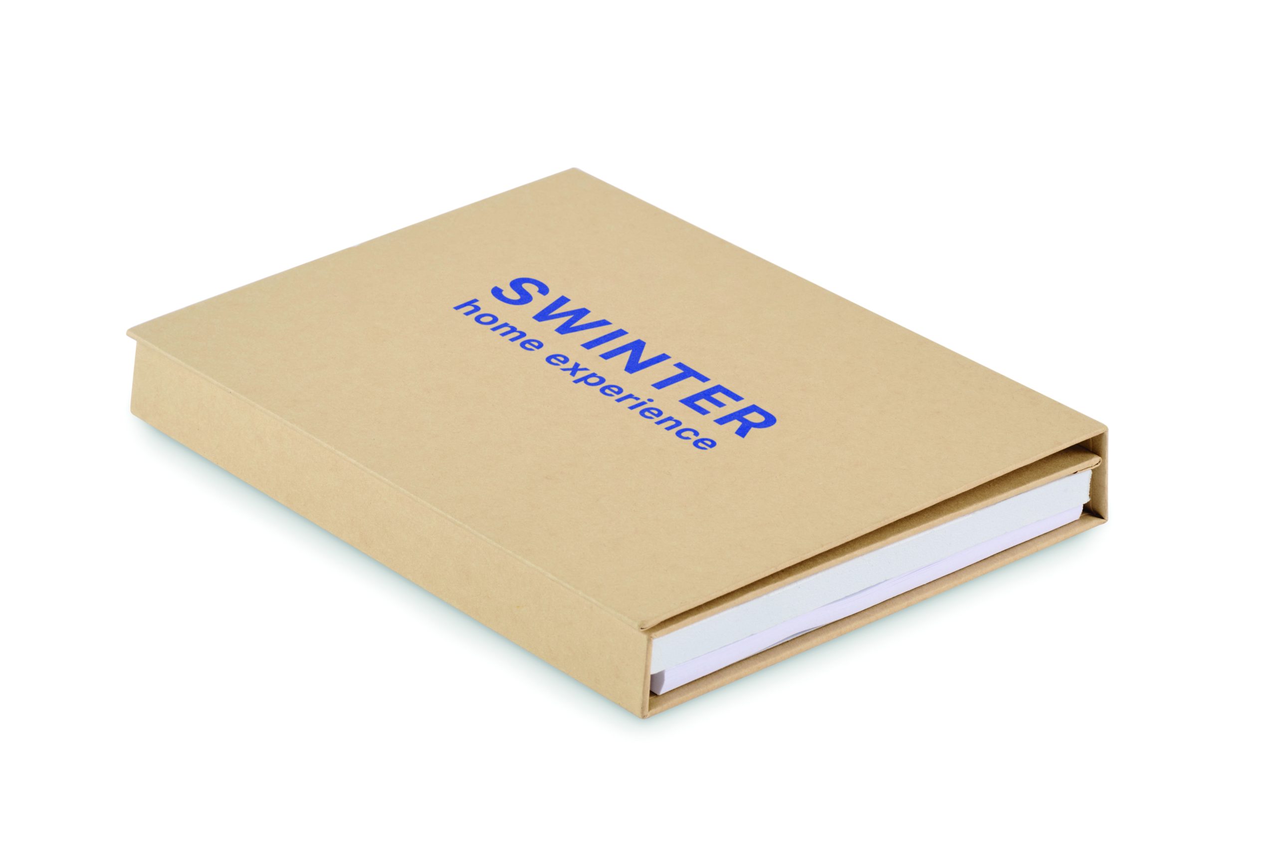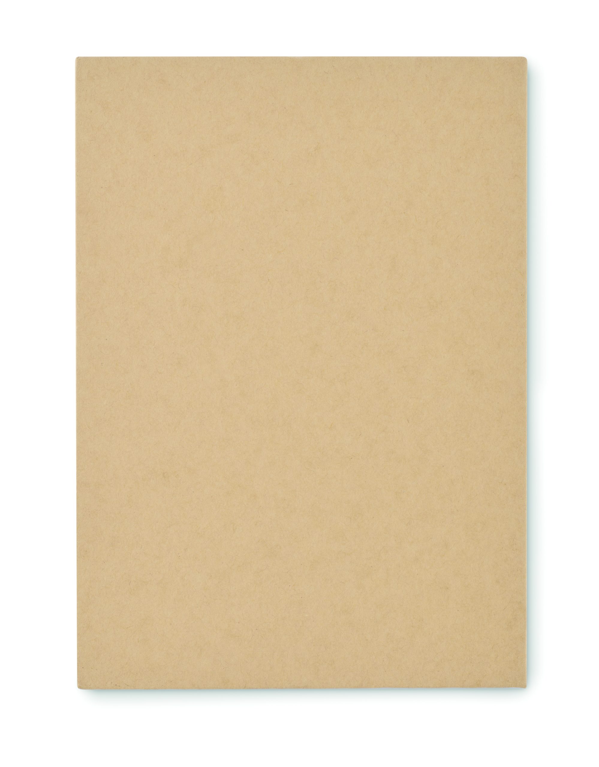 Zestaw piśmienniczy z notesem z okładką z kartonu pochodzącego z recyklingu. 70 kartek w linie z recyklingu. Karteczki samoprzylepne i znaczniki. Długopis z papierowym korpusem i elementami z ABS, temperówka z ABS, 2 drewniane ołówki, drewniana linijka 15 cm, gumka i kątomierz z PP.