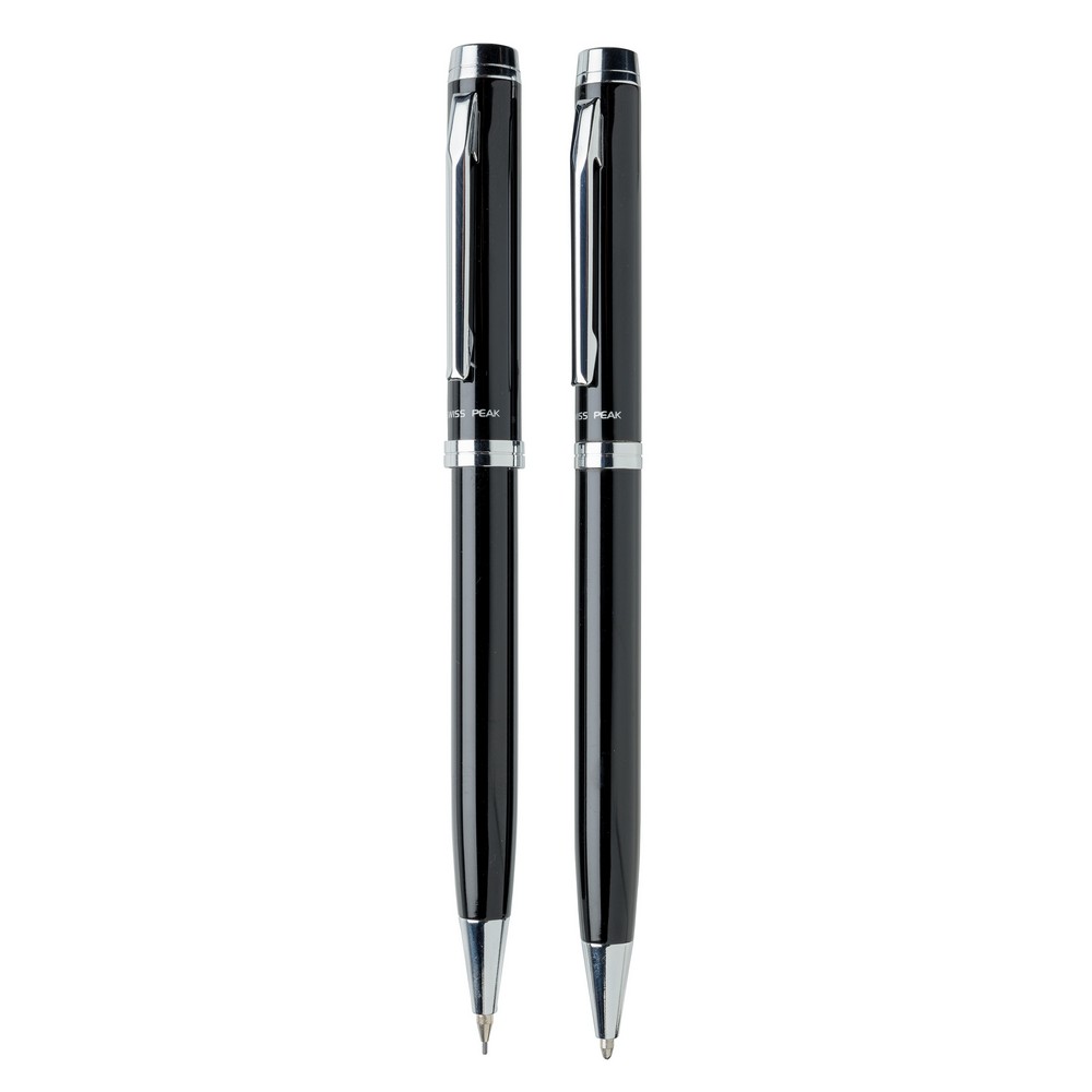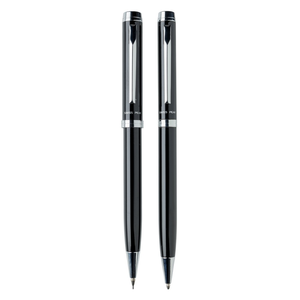 Zestaw piśmienny, długopis i ołówek mechaniczny 0.7 mm wysokiej jakości, niemiecki wkład, długość pisania ok. 1200 m, 3 wkłady do ołówka i ozdobne pudełko Swiss Peak w komplecie, ślad węglowy produktu: 0,21 kg CO2