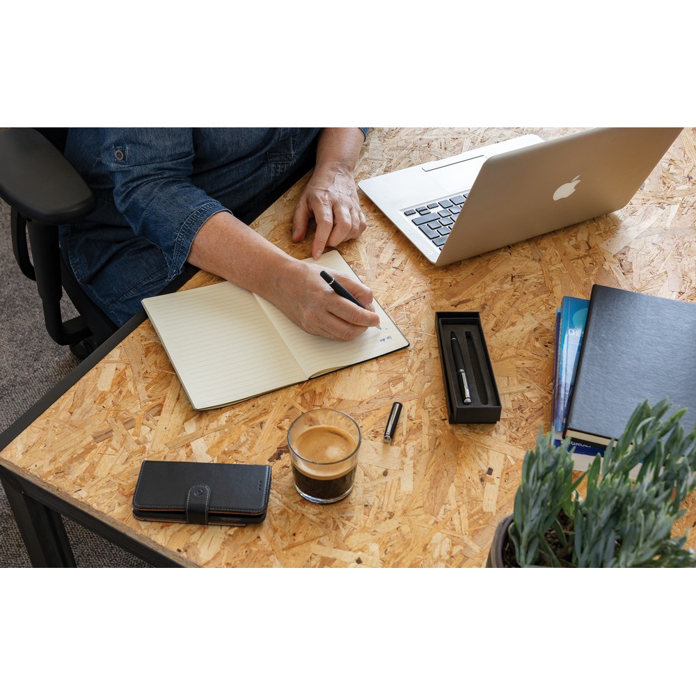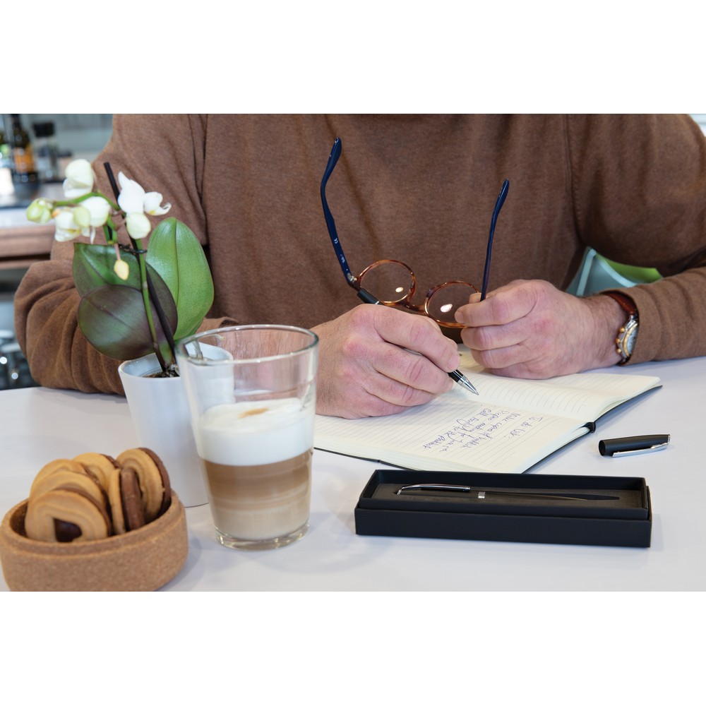 Ekskluzywny zestaw piśmienny, pióro kulkowe oraz długopis, matowe wykończenie, niemiecki wkład Dokumental® w kolorze niebieskim w komplecie, długość pisania długopisu ok. 1200 m, pióro kulkowe ok 400 m, w dopasowanym kolorystycznie pudełku ozdobnym, ślad węglowy produktu: 0,41 kg CO2