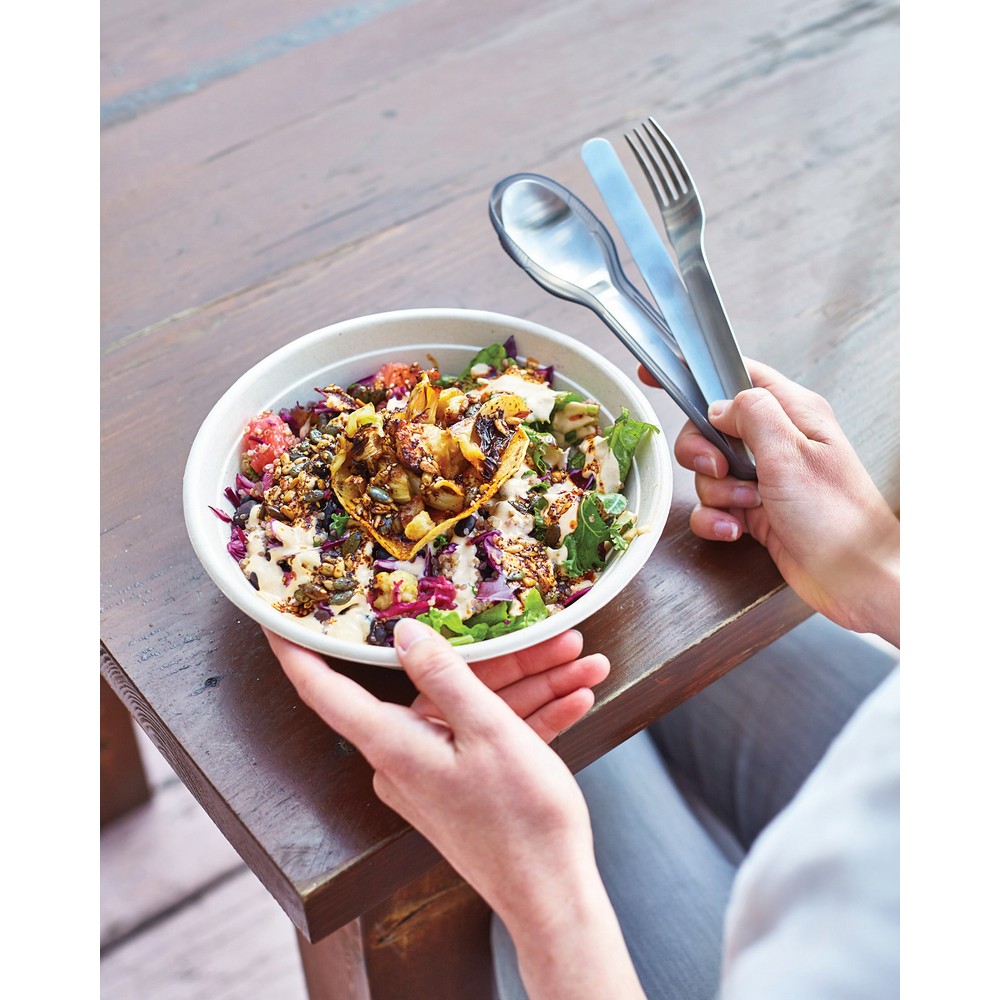 Zestaw sztućców, nóż, widelec oraz łyżka wykonane ze stali nierdzewnej, z etui wykonanym z PP, nadaje się do mycia w zmywarce