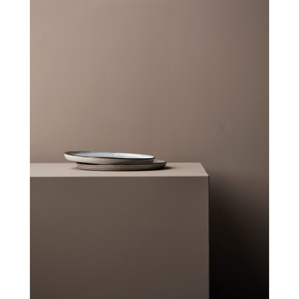 Zestaw talerzy 2 el., wykonane z naturalnej kamionki, każdy talerz jest robiony ręcznie dzięki czemu jest niepowtarzalny, można myć w zmywarce i używać w kuchence mikrofalowej