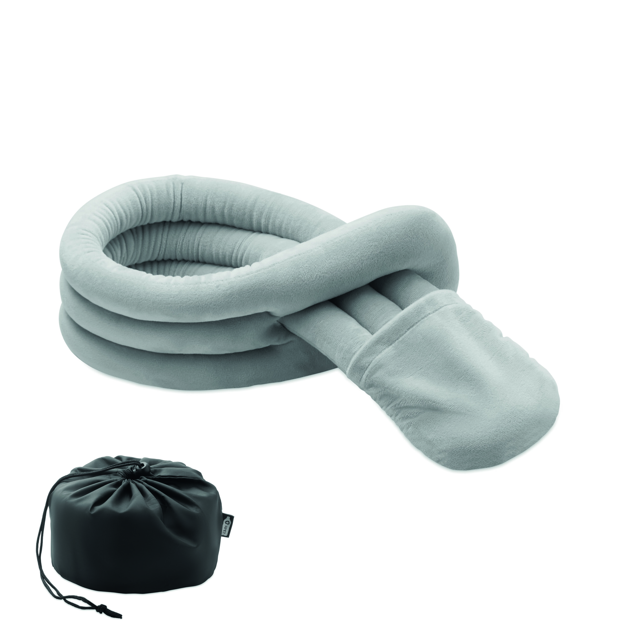 Elastyczna poduszka podróżna wykonana z miękkiego poliestru i pianki. Zawiera pokrowiec ze sznurkiem RPET ułatwiający przechowywanie. Wygodna i kompaktowa w podróży.