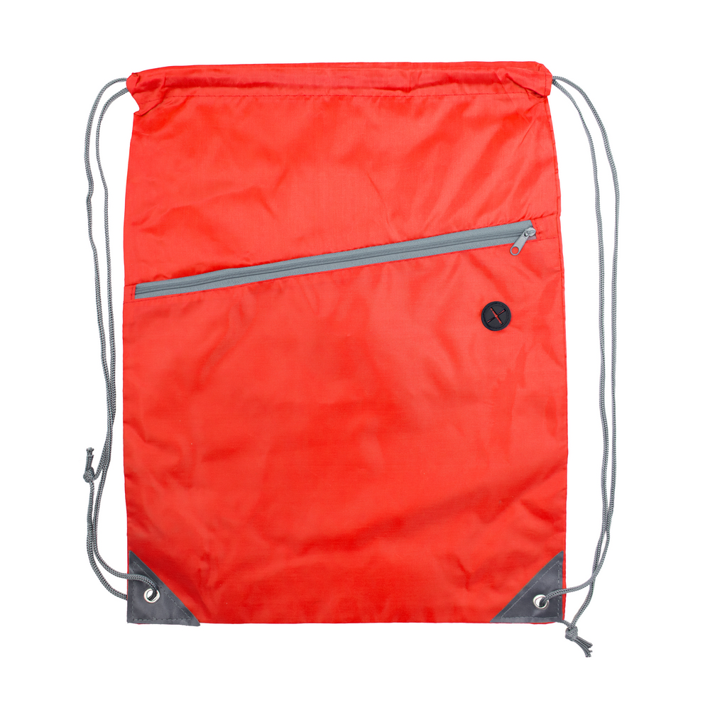 Worek ze sznurkiem, przednia kieszeń zapinana na zamek, wyjście na słuchawki