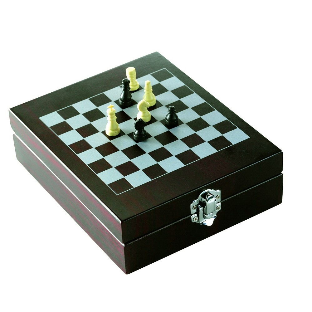 Zestaw do wina 5 el. w pudełku, szachy i akcesoria do wina: termometr, pierścień, zatyczka, nóż kelnerski